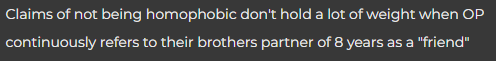 Original OP here: I dont know why my post was locked but someone messaged me to come here. I am replying here because am getting death threats. Reflecting I see where my family went wrong. I had a family meeting and we are rounding up and putting together everything we have to pay my brothers friend back all the money he was left. We made a terrible mistake and are trying to fix it. And please, we may not all have supported his relationship but we loved him and are not homophobic like everyone is writing. I take full responsibility because I am the one who convinced my little sister to listen to the family, but I now realize i was wrong.