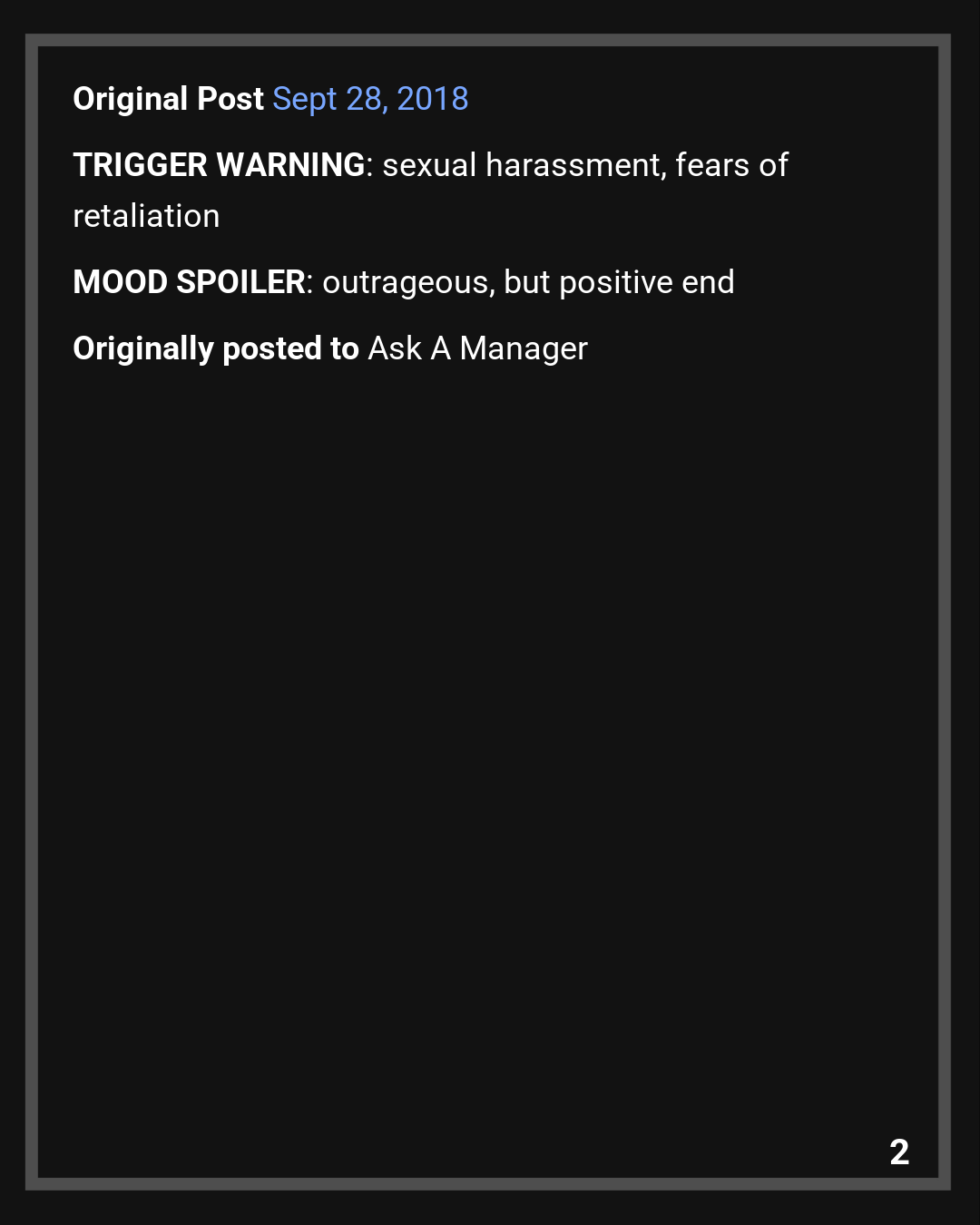 TRIGGER WARNING: sexual harassment, fears of retaliation
