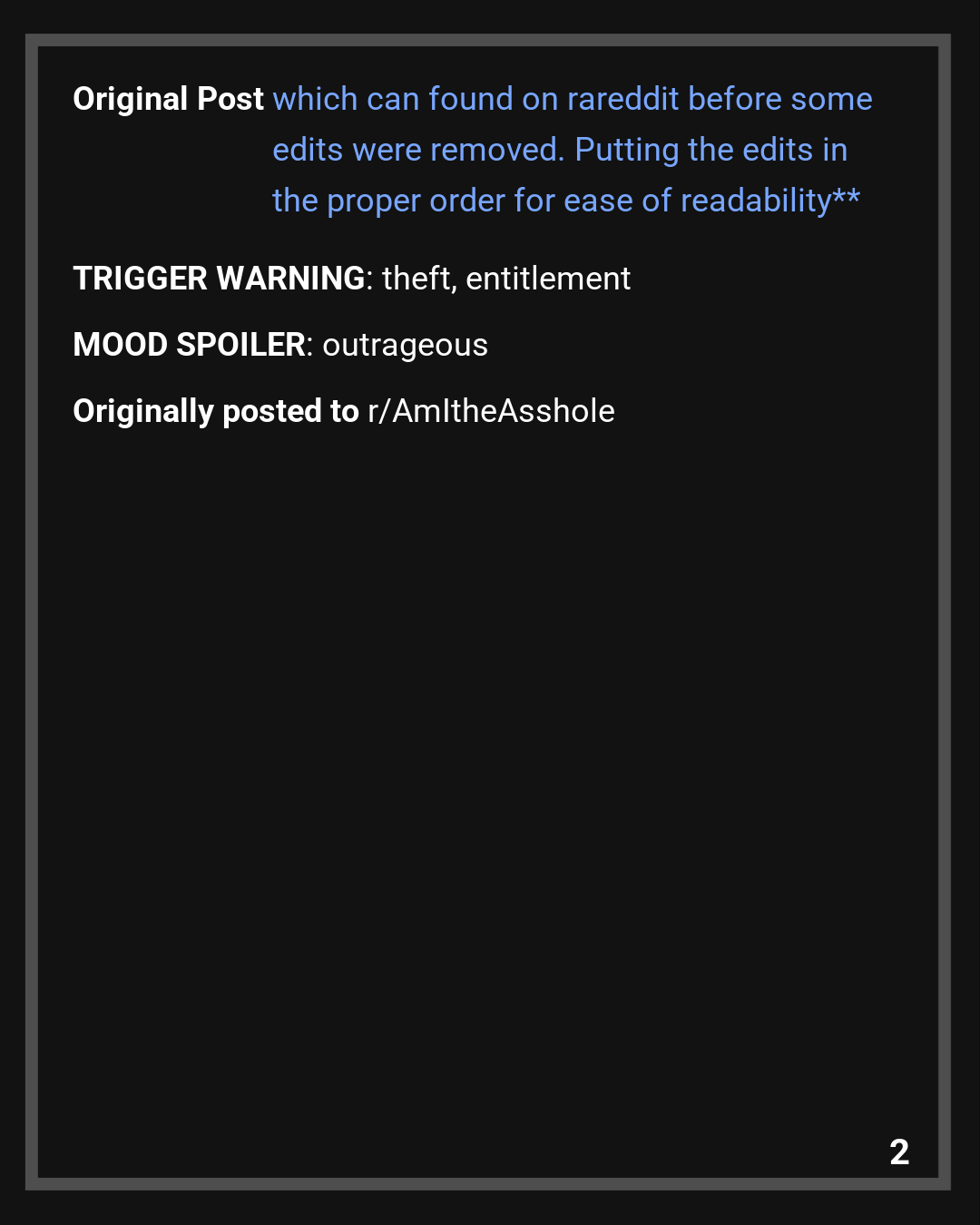Editor’s Note: the previous BoRU didn’t include the full original post which can found on rareddit before some edits were removed. Putting the edits in the proper order for ease of readability
