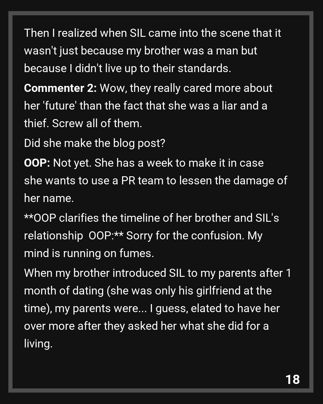 OOP clarifies the timeline of her brother and SIL’s relationship
