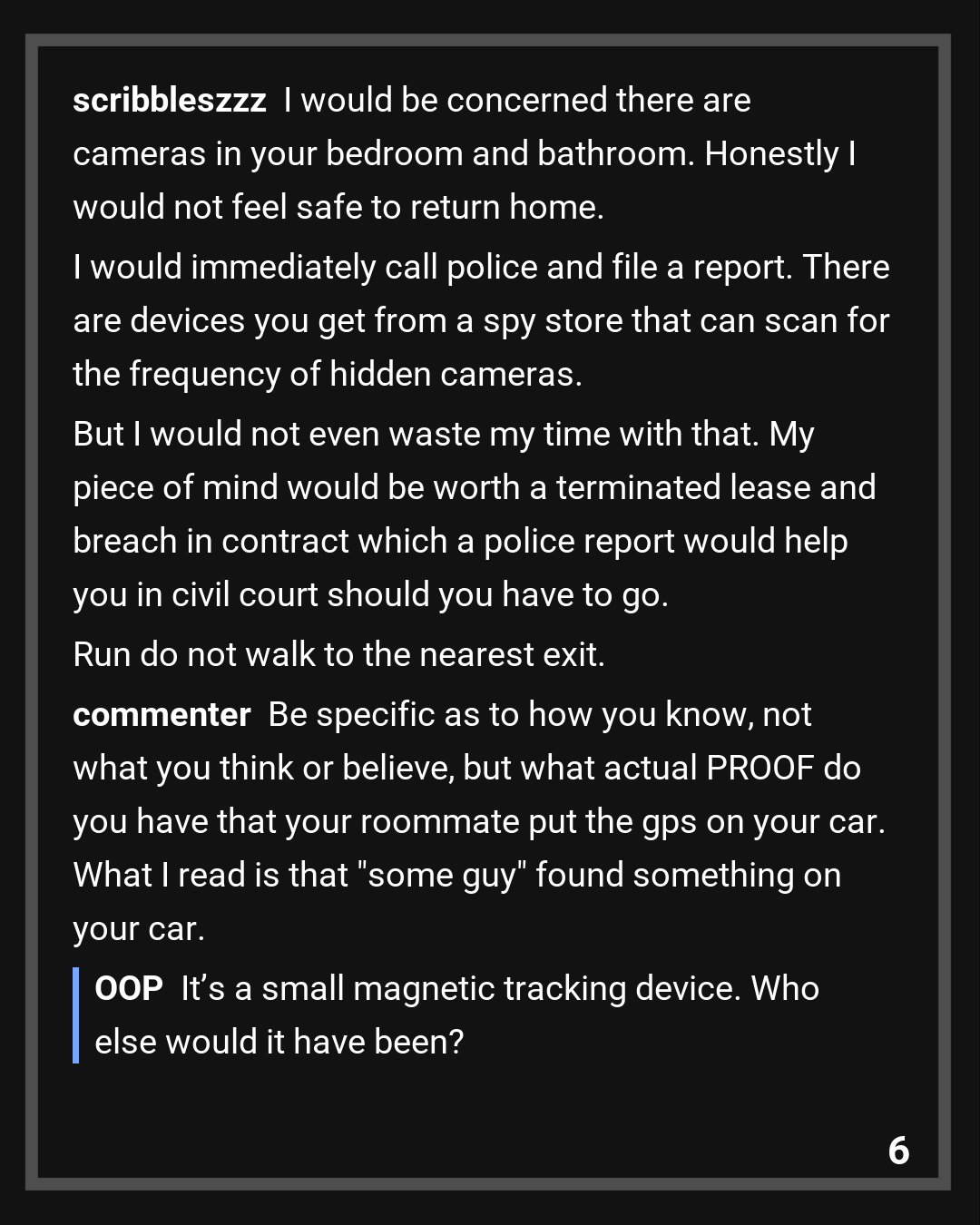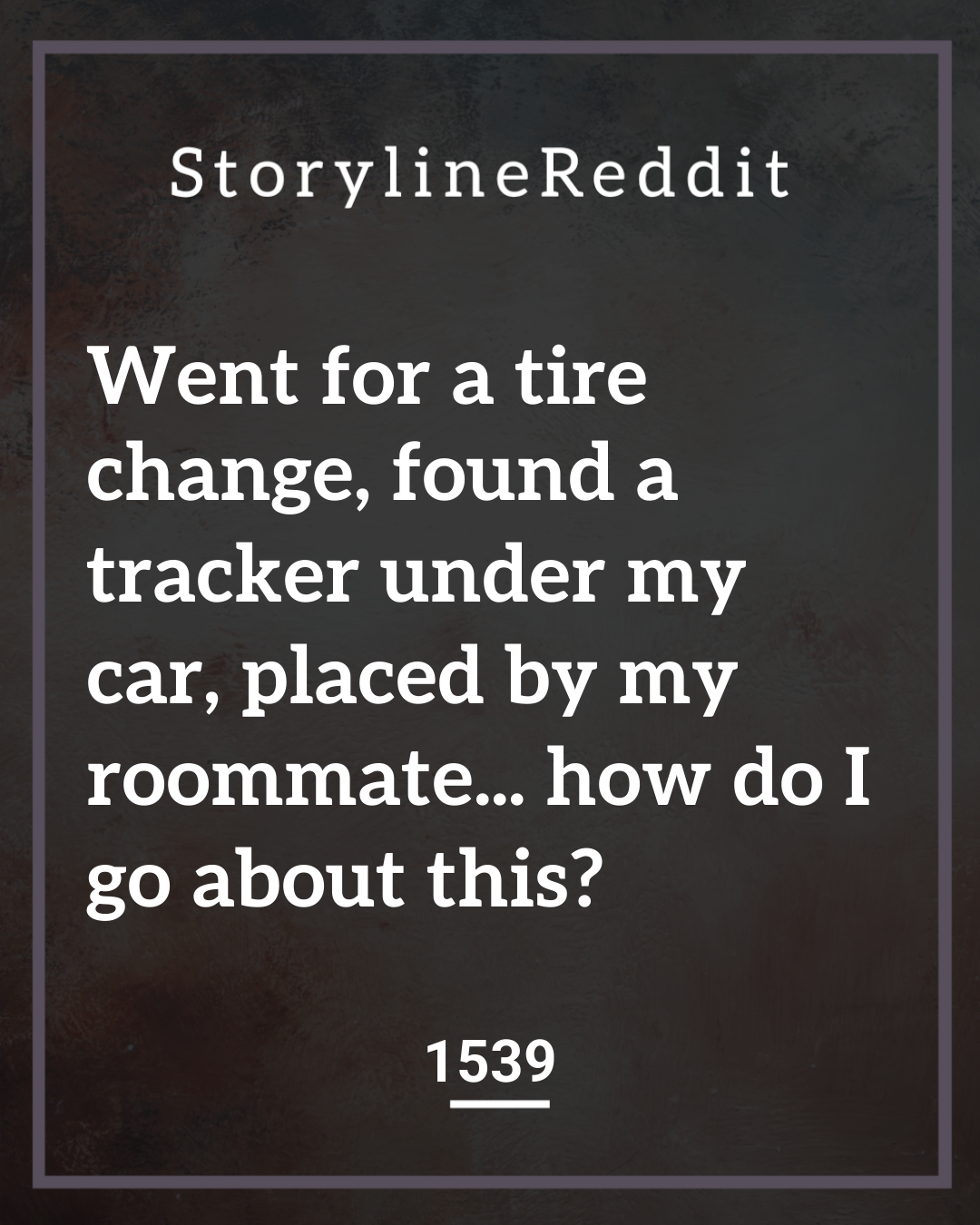 1539 – Went for a tire change, found a tracker under my car, placed by my roommate… how do I go about this?