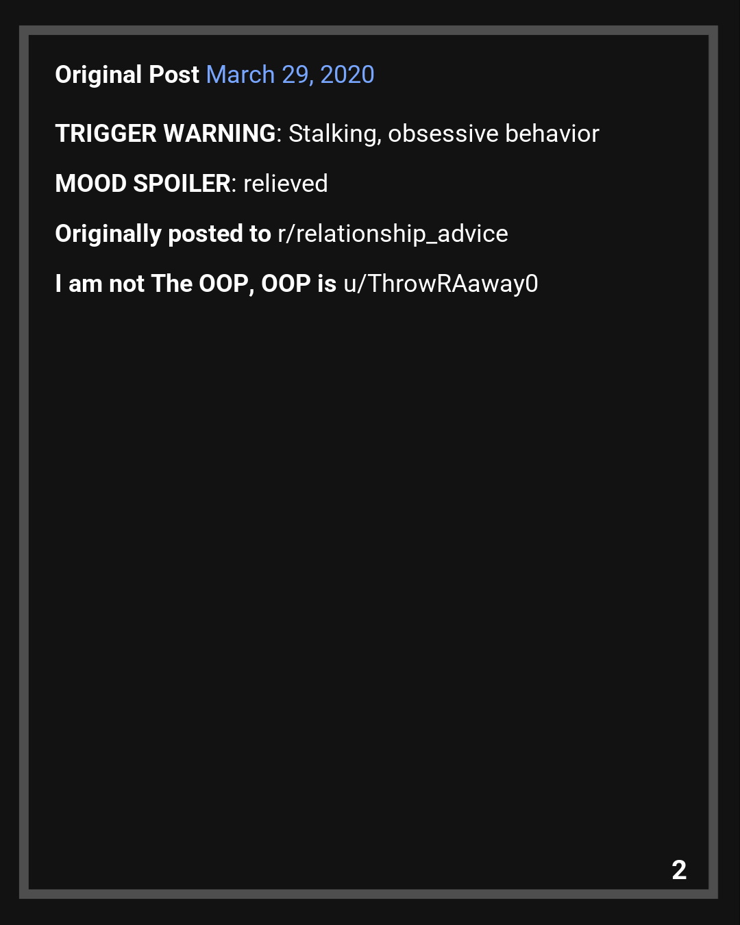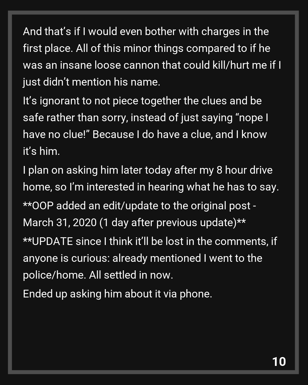 OOP added an edit/update to the original post – March 31, 2020 (1 day after previous update)