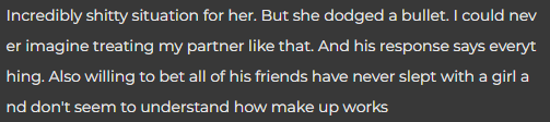 There’s a shift here quiet but sharp. The focus drifts from what he did in that moment with his friends to what her reaction supposedly reveals about her. The ground rearranges. Suddenly she’s defending her motives instead of addressing his choice.