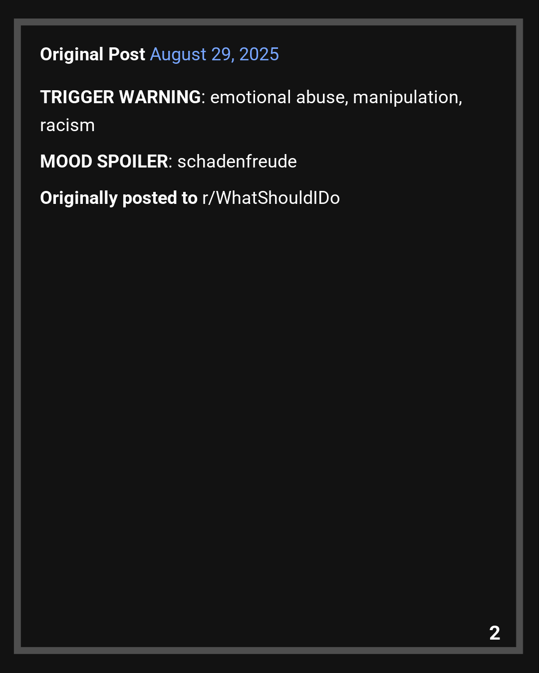 Originally posted to r/WhatShouldIDo