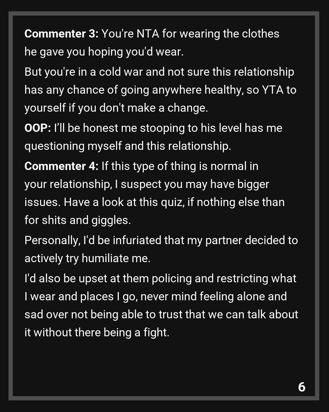 Commenter 3: You’re NTA for wearing the clothes he gave you hoping you’d wear.
