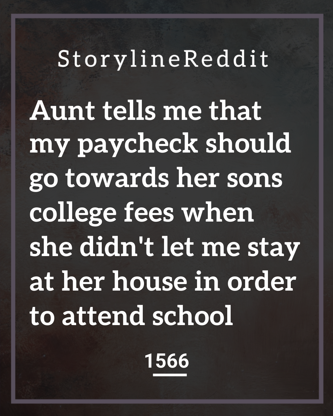 Aunt tells me that my paycheck should go towards her sons college fees when she didn’t let me stay at her house in order to attend school