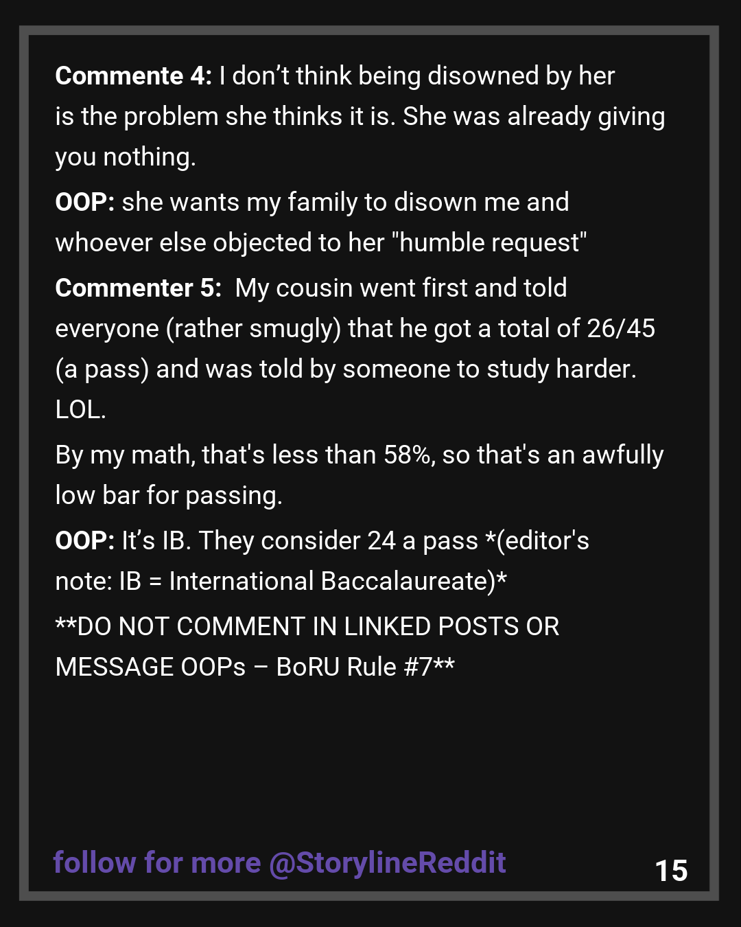 Commente 4: I don’t think being disowned by her is the problem she thinks it is. She was already giving you nothing.
