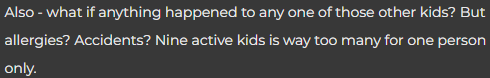 I got angry and said unless she’s willing to pay me 7x the amount of money she pays me now, there’s no way I’m watching 9 kids for the amount of time that they’re gone(8 hours) and I just wouldn’t be able to handle it. Her face changed from confused to frustrated and said I should be lucky I’m their nanny at all with the amount of money I’m paid and to be grateful and do this one thing as it’s just one night she just wants to treat her friends to a nice dinner. I was shocked and didn’t say anything else and just left their house.