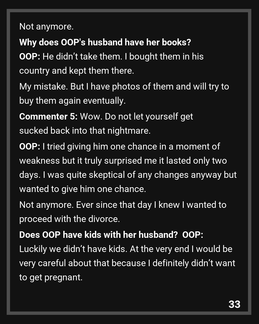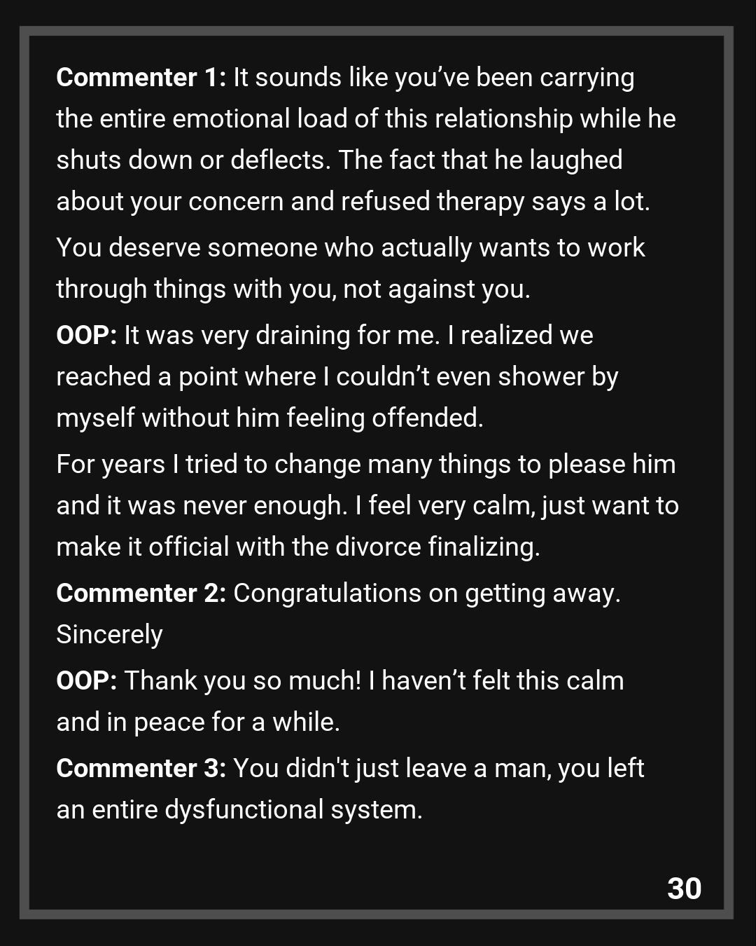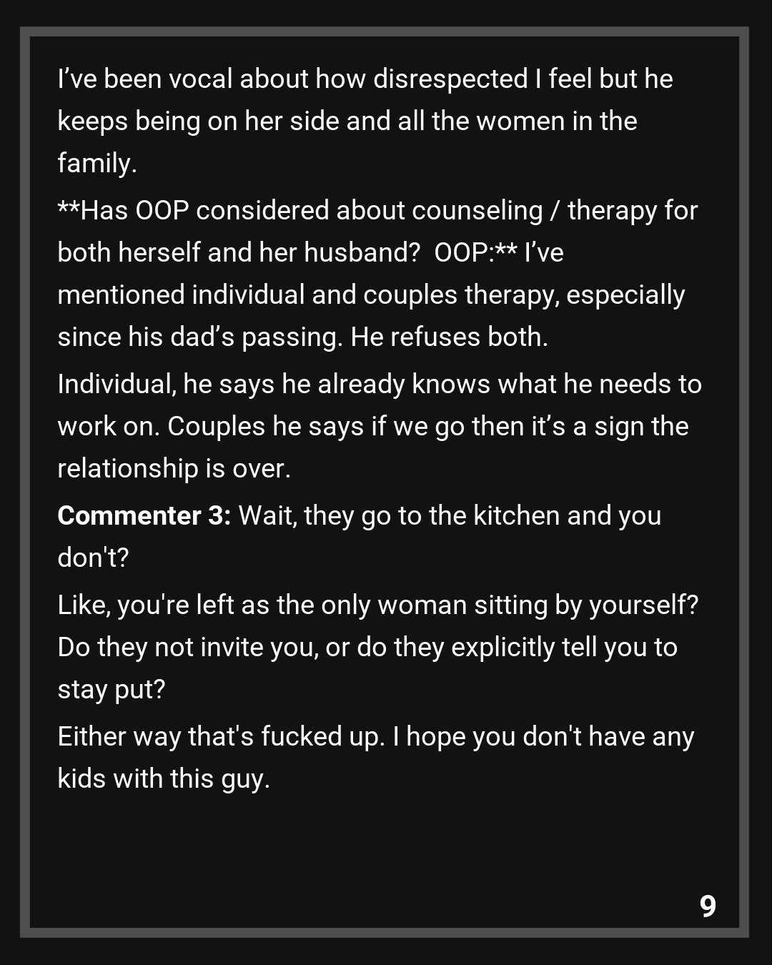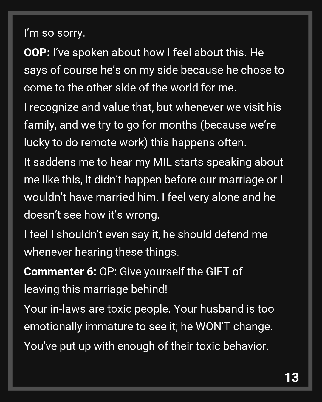 Commenter 6: OP: Give yourself the GIFT of leaving this marriage behind!