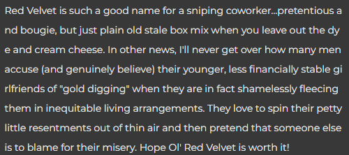 He starts saying things like “you never loved me, you knew I was a prize pig”, etc. Our degrees are the same, that is how we met, but his Dad hired him right out of school, and I was left to find work for myself. I don’t resent him for this but I wasn’t even aware of his economic status while we were initially dating and by the time I learned I was already invested in the relationship. Trust me when I say he’s NEVER been this aggressive before in our entire relationship, so I knew something was up. I was super pissed and I outright asked him if he was fucking Red Velvet, his “work friend”. He said that a while ago they went out for drinks after work with a whole group and ended up kissing afterwards. I asked him if that was all that happened and he said yes.