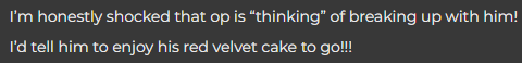 tl;dr: John is having an affair with his coworker “Red Velvet”. We broke up.