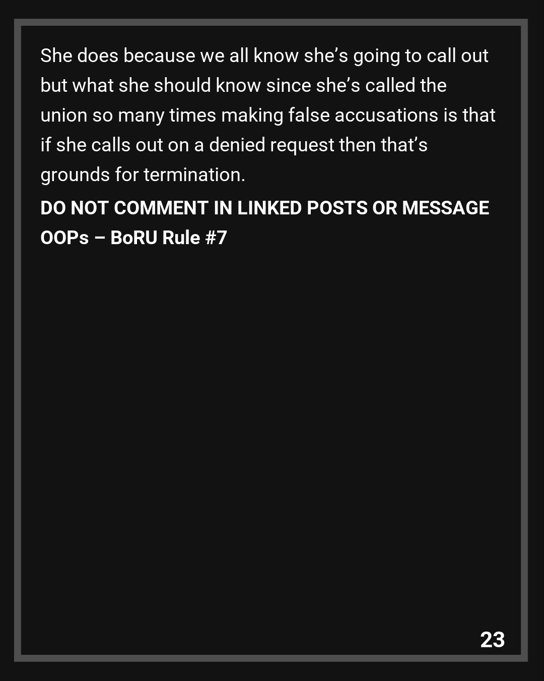 OOP: We’re a union so it’s very difficult to fire someone.